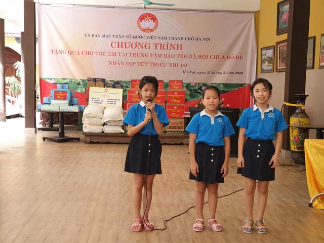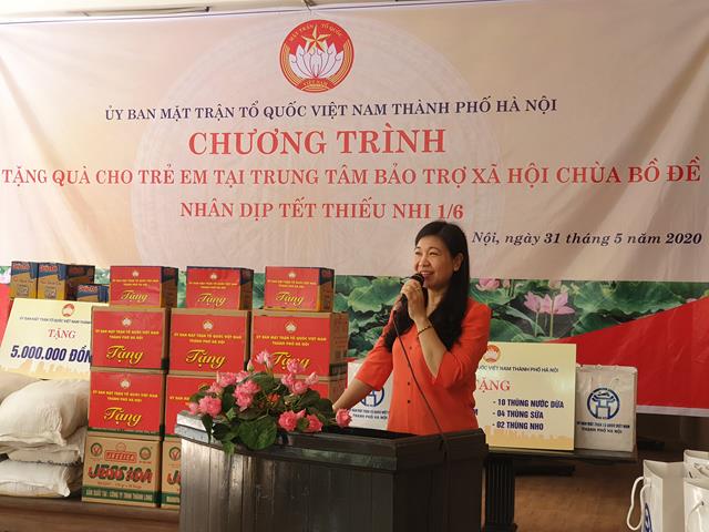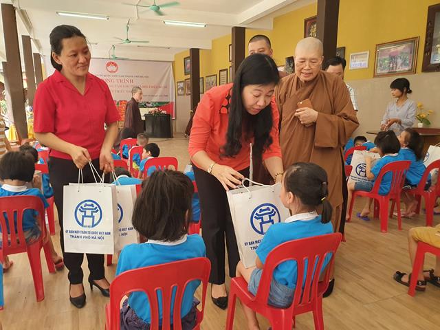 PSO - Chiều ngày 31 tháng 05 năm 2020, nhằm ngày 09 tháng 04 nhuận năm Canh Tý, đoàn Ủy ban Mặt trận Tổ quốc Việt Nam (UBMTTQVN) thành phố Hà Nội đã tới cơ sở bảo trợ xã hội chùa Bồ Đề, số 90 phố Phú Viên, phường Bồ Đề, quận Long Biên để trao tặng quà cho 57 em nhỏ tại đây nhân dịp Tết thiếu nhi 1/6.