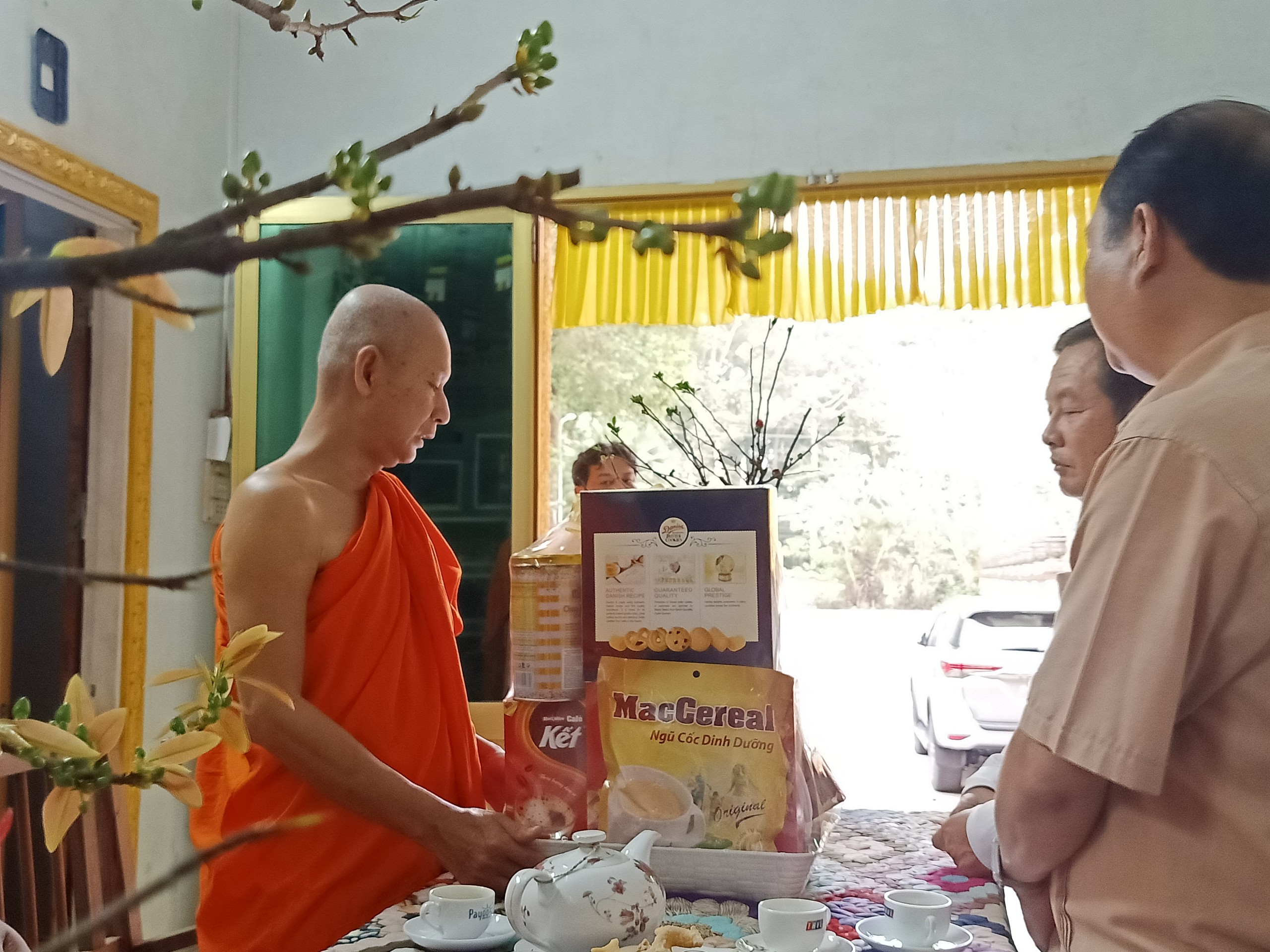 PSO - Chiều ngày 30/01/2021 (nhằm 18/12 năm Canh Tý) tại chùa Hạnh Phúc Tăng – Văn phòng Hội Đoàn kết Sư sãi Yêu nước (ĐKSSYN) tỉnh Vĩnh Long ở xã Trung Thành (huyện Vũng Liêm), ông Nguyễn Văn Hồng Quân – Phó giám đốc Sở Nội vụ tỉnh Vĩnh Long và ông Trần Văn Biết - Trưởng ban Tôn giáo tỉnh cùng phái đoàn đã đến thăm, chúc Tết và dâng quà nhân dịp xuân Tân Sửu 2021.