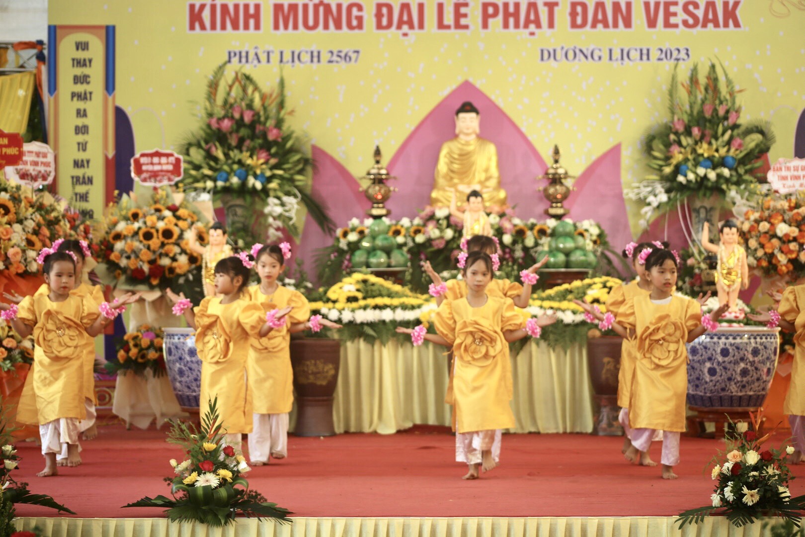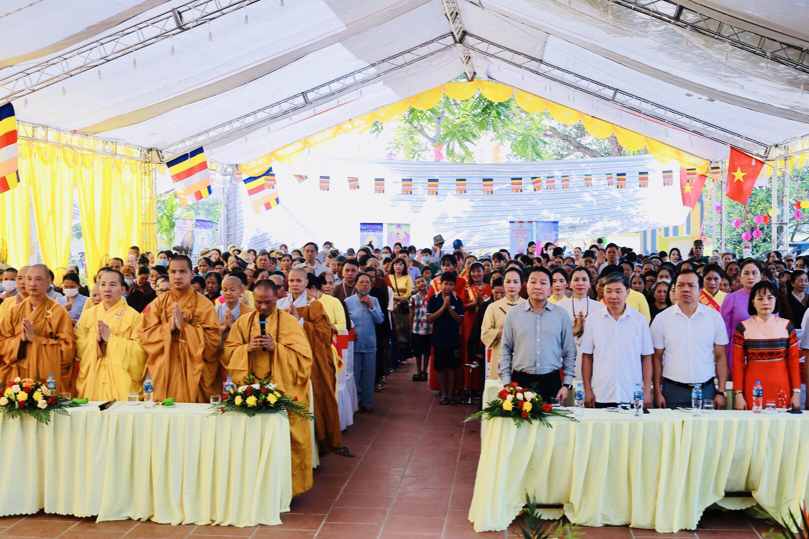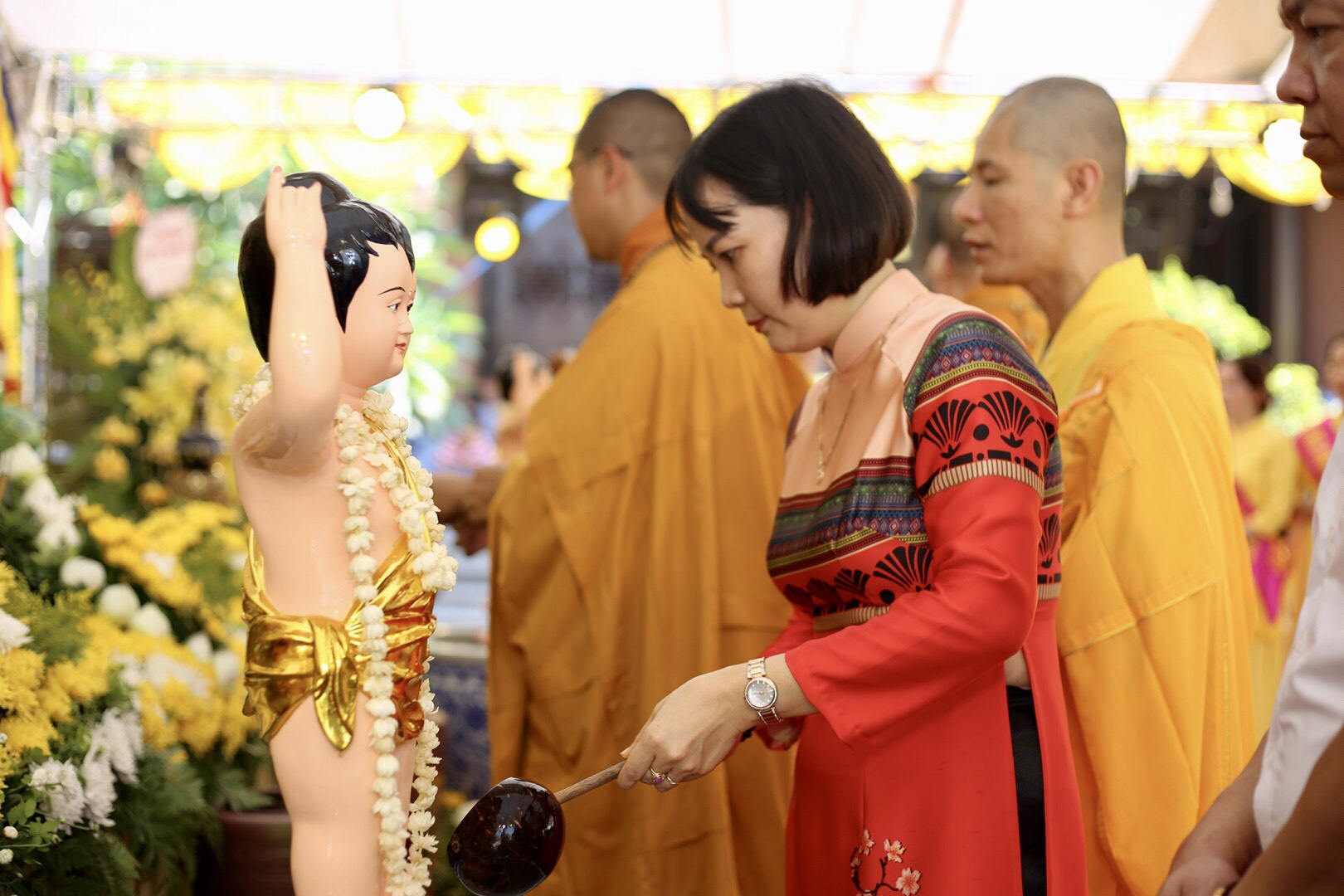 Tiếp đó, chư Tôn đức Tăng Ni đã cùng các cấp chính quyền và đồng bào Phật tử trang nghiêm, thành kính cử hành nghi lễ dâng hương, bạch Phật và lễ tắm Phật truyền thống trong Phật giáo.