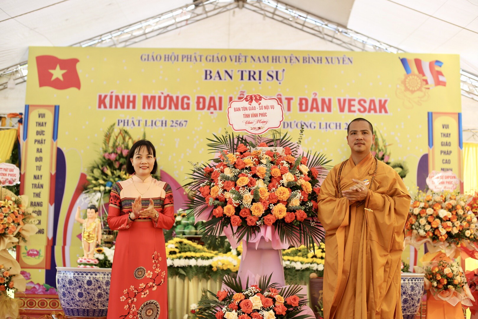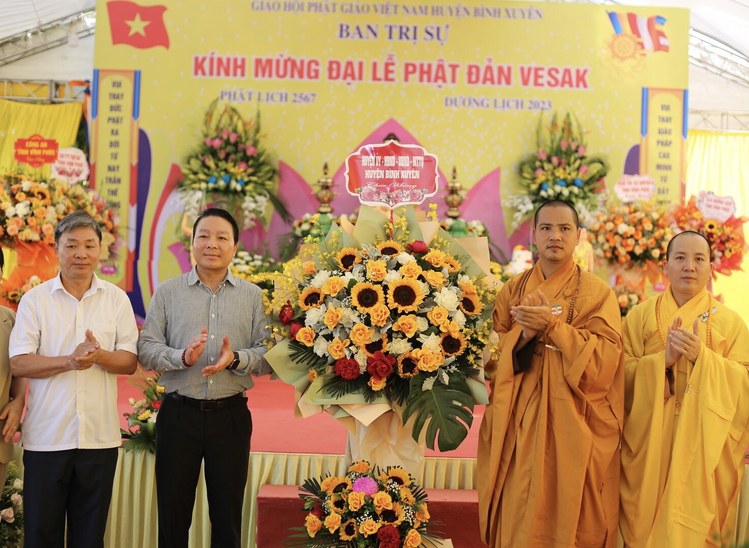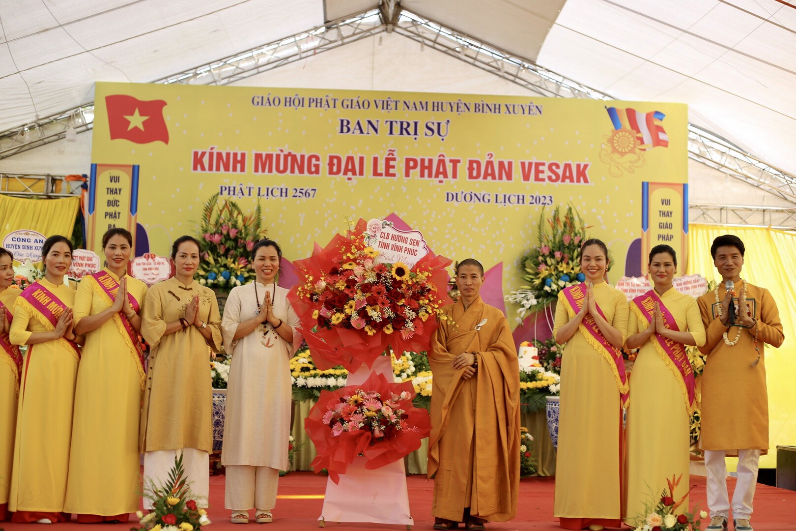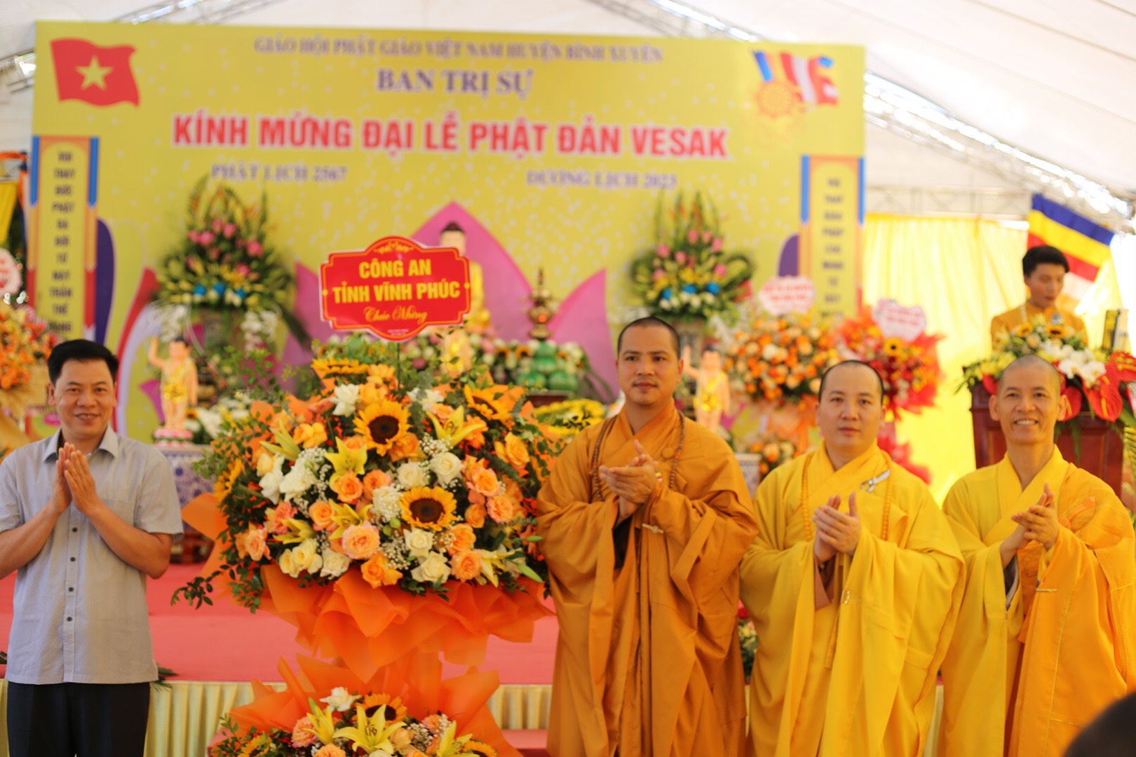Về phía khách mời có bà Nguyễn Thị Hương Lan, Phó ban Tôn giáo Sở Nội Vụ tỉnh Vĩnh Phúc; Thượng tá Phạm Thái Bình, Phó phòng An ninh Nội địa Công an tỉnh; ông Kim Ngoan Văn Quýnh, Phó Bí thư Thường trực Huyện uỷ, Trưởng ban Chỉ đạo công tác tôn giáo huyện Bình Xuyên; ông Tạ Anh Sơn, Phó Trưởng Công an huyện Bình Xuyên cùng đại diện Lãnh đạo các ban ngành của huyện, chính quyền địa phương sở tại, đông đảo Phật tử trong và ngoài huyện cũng về tham dự.