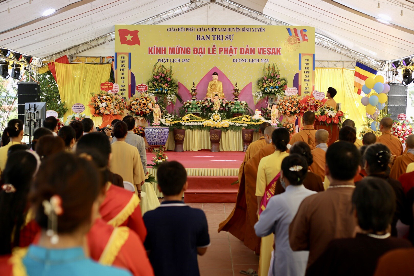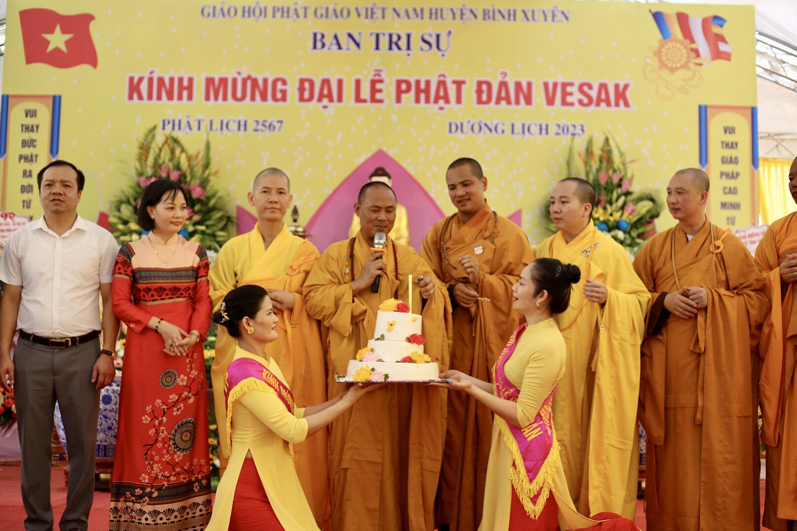 Tiếp đó, ĐĐ. Thích Thanh Toản, Ủy viên Thường trực BTS Phật giáo tỉnh, Trưởng BTS Phật giáo huyện Bình Xuyên tuyên đọc Diễn văn Phật đản PL.2567 - DL.2023 của Hòa thượng Thích Thiện Nhơn – Chủ tịch HĐTS GHPGVN. Hòa thượng Chủ tịch gửi lời kính chúc chư Tôn đức Tăng Ni, Quý Cư sĩ, và đồng bào Phật tử Việt Nam ở trong nước và ở nước ngoài một mùa Phật đản an lạc.