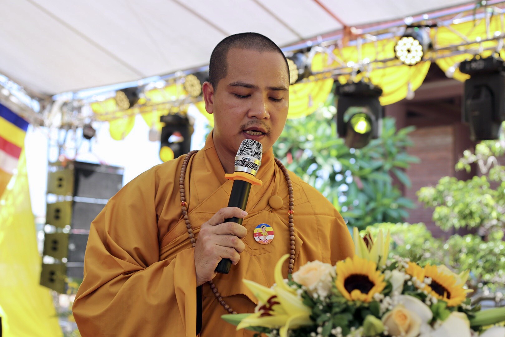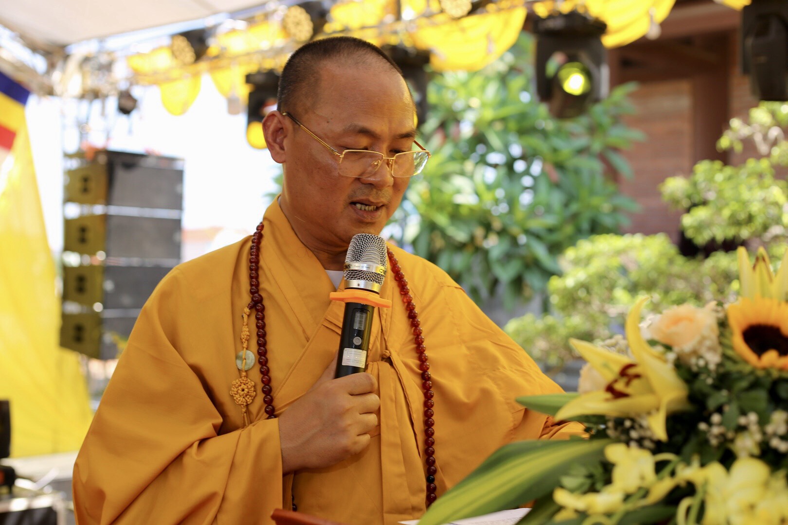 Sau nghi lễ niệm Phật cầu gia hộ, chào Quốc kỳ, Đạo kỳ, TT. Thích Giác Minh cung tuyên bức Thông điệp Đại lễ Phật đản của Đức Trưởng lão Hoà thượng Thích Trí Quảng - Đức Pháp chủ GHPGVN gửi Tăng Ni và Phật tử trong và ngoài nước nhân mùa Phật đản PL.2567.