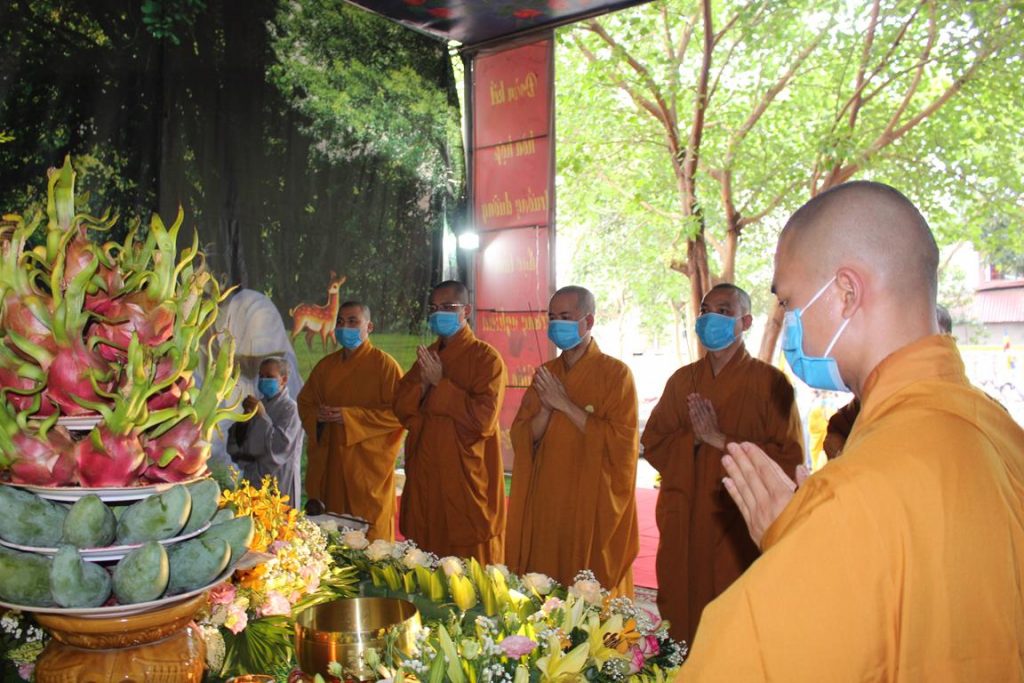 Sau nghi lễ niệm Phật cầu gia hộ, tuyên bố lý do, giới thiệu chương trình Đại lễ, trong niềm tôn kính vô biên, toàn đại chúng đã lắng đọng tâm tư nghe ĐĐ.Thích Thanh Lâm tuyên đọc Thông điệp Phật đản PL. 2564 của Đức Pháp chủ GHPGVN gửi chư Tôn túc Hòa thượng, Thượng tọa, Ni trưởng, Ni sư, Đại đức Tăng Ni, Cư sĩ, Phật tử Việt Nam ở trong nước và nước ngoài. Theo đó, Trưởng lão Hòa thượng Pháp chủ GHPGVN đã có lời tán thán chư Tôn đức Tăng Ni, các chùa và cơ sở tự viện trong cả nước, đồng bào Phật tử Việt Nam ở trong nước và ở nước ngoài đã tin tưởng, đồng thuận, nhiệt tình hưởng ứng lời kêu gọi của Đảng, Nhà nước, Chính phủ, Mặt trận Tổ quốc Việt Nam trong công tác phòng, chống dịch bệnh.