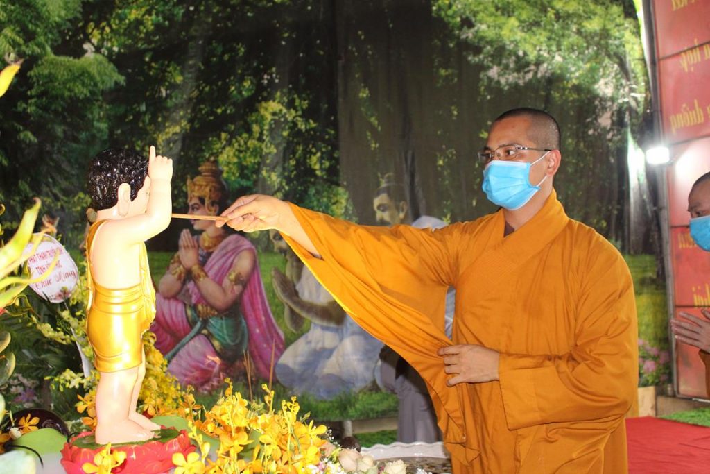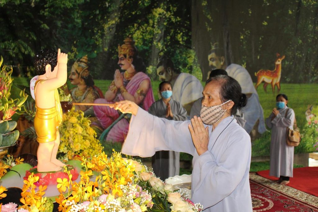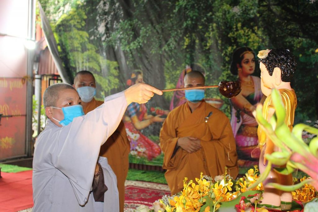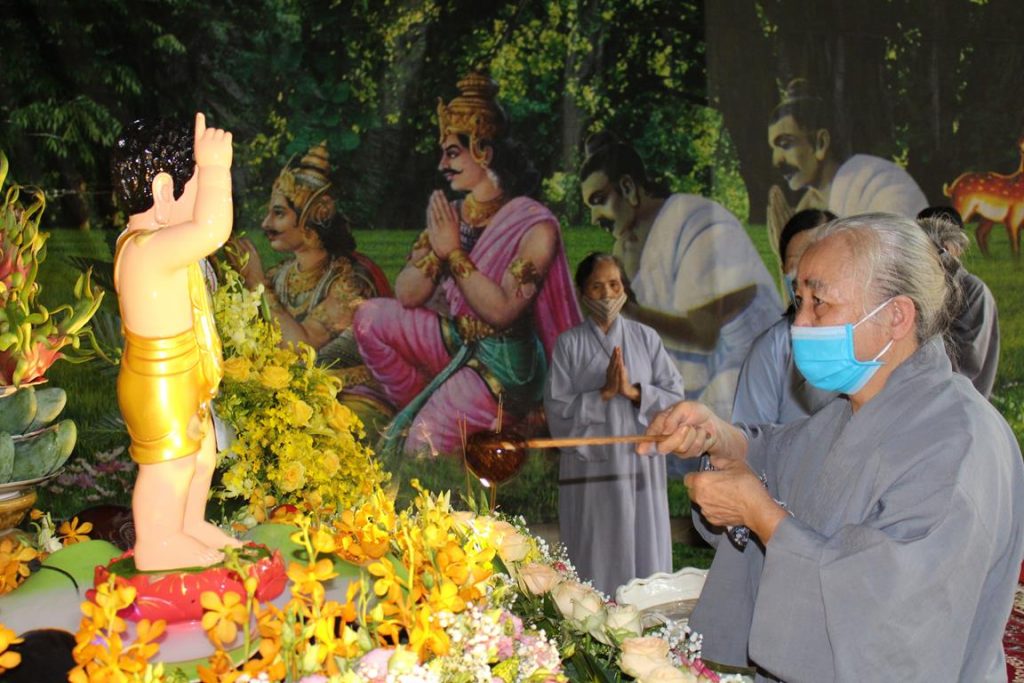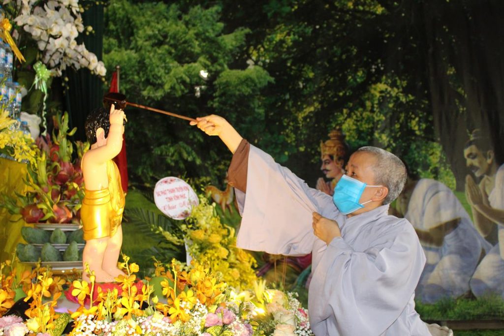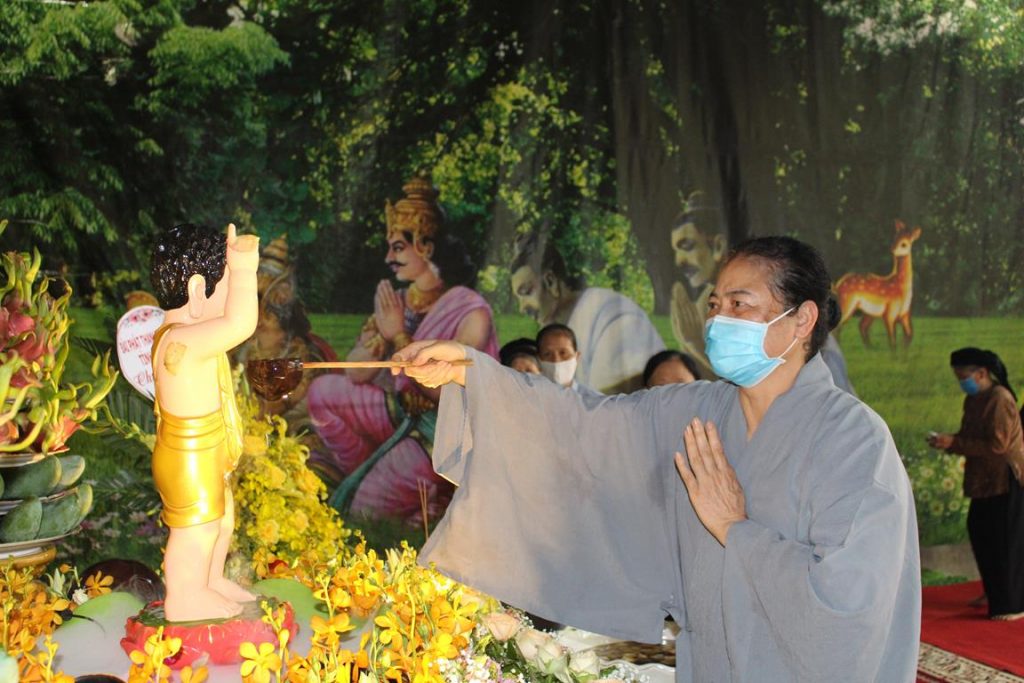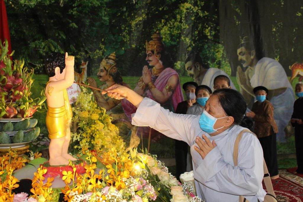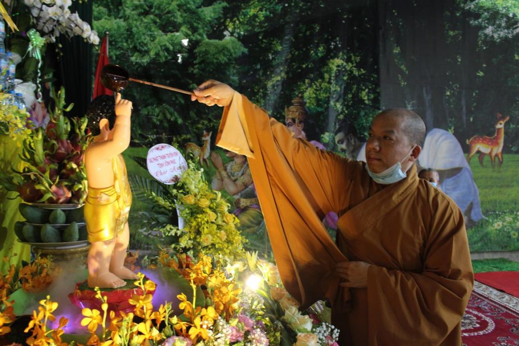 Cuối cùng, chư Tôn đức và toàn thể đại chúng đã làm lễ niêm hương bạch Phật, tụng kinh Phật Đản và thực hiện nghi thức tắm Phật trong tiếng niệm hồng danh Đức Bản Sư Thích Ca Mâu Ni Phật trang nghiêm, nhất tâm và thành kính .
