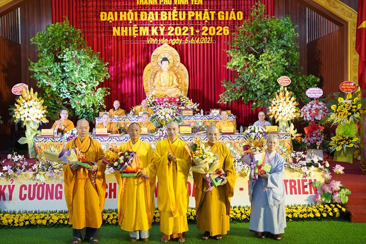 Đoàn chủ tịch có: Đại đức Thích Tâm Vượng – Phó Trưởng Ban kiêm Chánh Thư ký BTS GHPGVN tỉnh Vĩnh Phúc, Trưởng Ban Trị sự GHPGVN thành phố Vĩnh Yên, Trưởng Ban Tổ chức Đại hội; Thượng Toạ Thích Minh Pháp - Phó Trưởng BTS GHPGVN tỉnh Vĩnh Phúc; Thượng toạ Thích Nguyên Đạo – Ủy viên thường trực, Trưởng Ban Kiểm soát BTS tỉnh Vĩnh Phúc; Đại đức Thích Nguyên Cao – Phó Chánh Thư ký BTS Phật giáo tỉnh Vĩnh Phúc; Đại đức Thích Thanh Toản – Ủy viên thường trực, Trưởng Ban Pháp chế tỉnh Vĩnh Phúc, Phó Trưởng Ban Thường trực BTS Phật giáo thành phố Vĩnh Yên, Phó Ban Tổ chức Đại hội; Sư cô Thích Nữ Từ Hiếu – Ủy viên BTS Phật giáo tỉnh, Phó Trưởng Ban kiêm Chánh Thư ký BTS thành phố Vĩnh Yên, Phó Ban Tổ chức Đại hội.