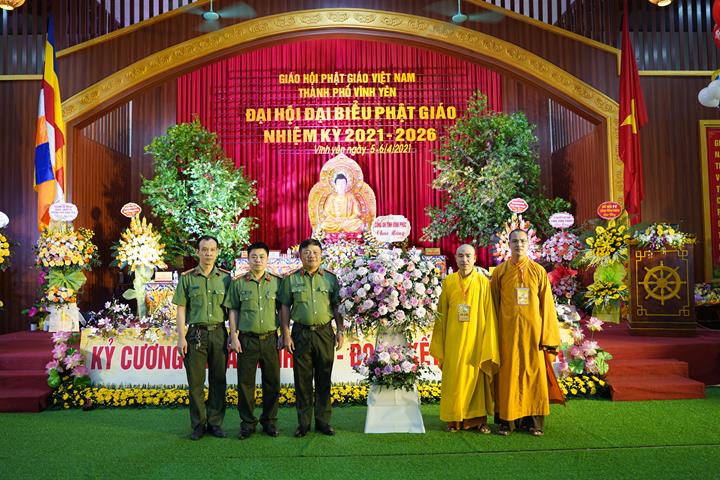 Về phía Chính quyền có ông Nguyễn Văn Bẩy – Phó Trưởng Ban Dân vận tỉnh Uỷ tỉnh Vĩnh Phúc; Ông Vũ Văn Bằng – Phó Chủ tịch UB MTTQVN tỉnh Vĩnh Phúc; Ông Nguyễn Tuấn Anh – Phó Giám đốc Sở Nội vụ tỉnh; Đại tá Lê Thanh Bình – Phó Giám đốc Công an tỉnh Vĩnh Phúc; Bà Nguyễn Thị Hương Lan – Phó trưởng Ban Tôn giáo tỉnh Vĩnh Phúc; Trung tá Trương Văn Việt – Phó trưởng Phòng An ninh đối nội Công an tỉnh Vĩnh Phúc; Ông Lê Anh Tân – Thành Uỷ viên, Phó Chủ tịch UBND thành phố Vĩnh Yên; Ông Phan Công Anh – Phó Trưởng Công an thành phố Vĩnh Yên cùng quý lãnh đạo đại diện cho chính quyền các cấp, và sự tham dự của đông đảo nhân dân Phật tử thành phố Vĩnh Yên.
