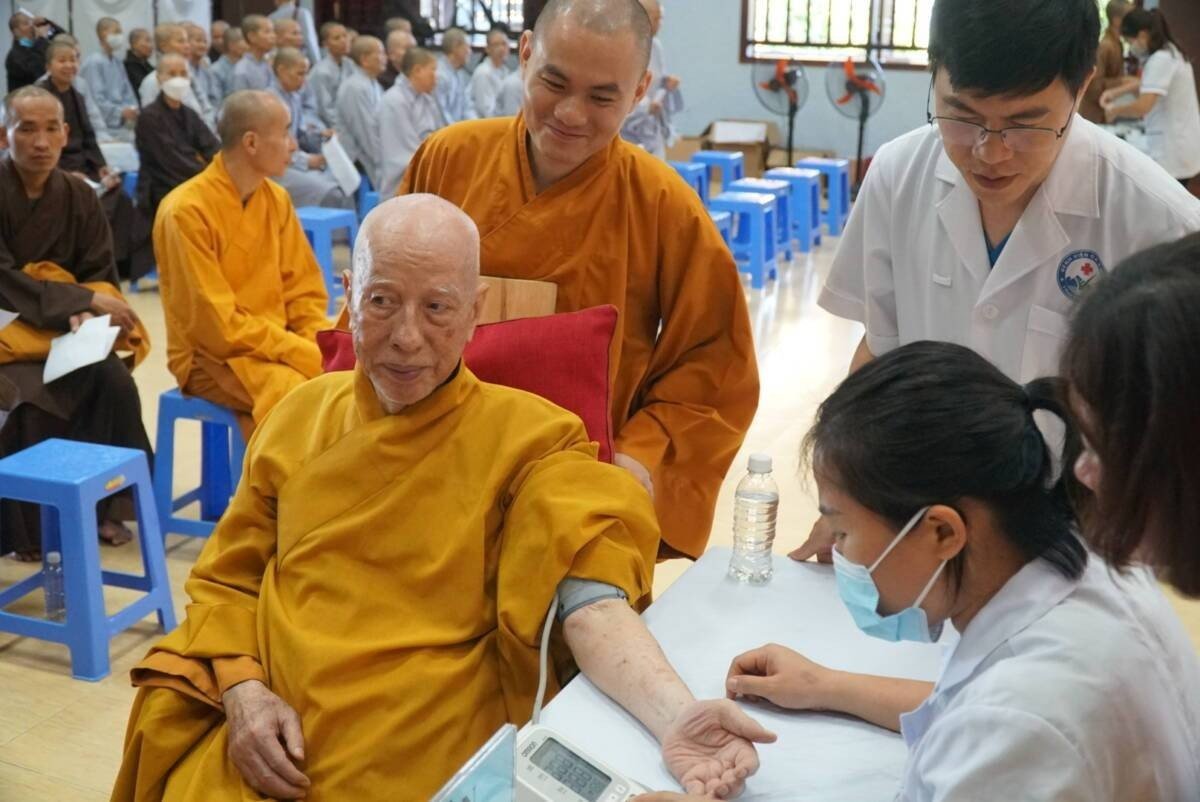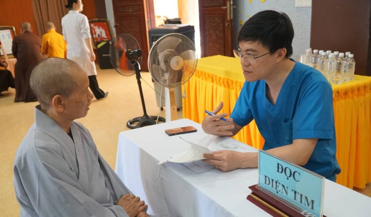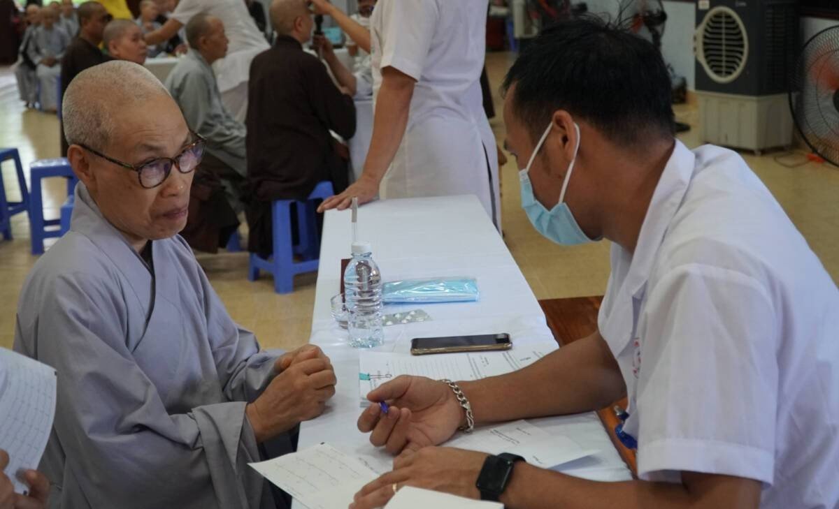 Đoàn Y Bác sĩ khám bệnh tại hạ trường chùa Linh SơnTại 2 điểm hạ trường, tất cả chư Tăng Ni hành giả đã tập trung đầy đủ cùng với sự hướng dẫn cụ thể của hơn 20 Bác sĩ chuyên khoa, Y tá điều dưỡng, Kỹ thuật viên cùng với trang thiết bị hiện đại đã khám lâm sàng, siêu âm bụng tổng quát, khám mắt, đo điện tim…. Cũng như cấp phát thuốc miễn phí cho tổng hơn 170 vị bao gồm chức sắc, chức việc…
