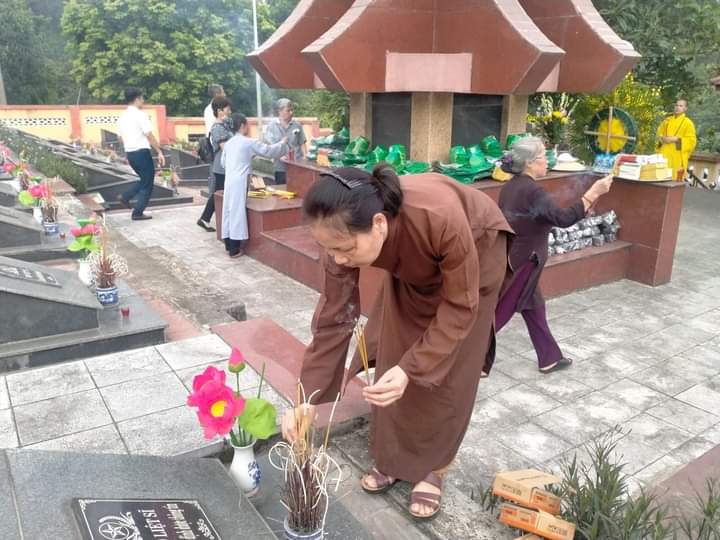 Sau phút tưởng niệm, quý chư Tôn đức đã đến từng mộ phần thắp hương tri ân các liệt sĩ đang yên nghỉ tại Nghĩa trang liệt sĩ huyện Yên Bình thực hiện đạo lý “Uống nước nhớ nguồn” và thể hiện lòng tri ân đối với các chư vị anh linh liệt sĩ đã anh dũng hy sinh trong các cuộc kháng chiến vì sự nghiệp giải phóng dân tộc, độc lập và thống nhất đất nước.
