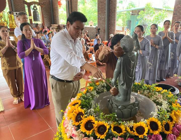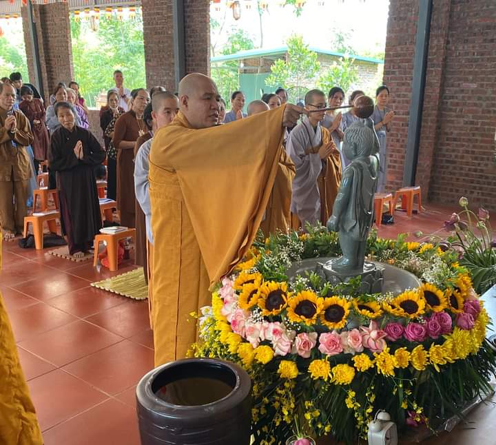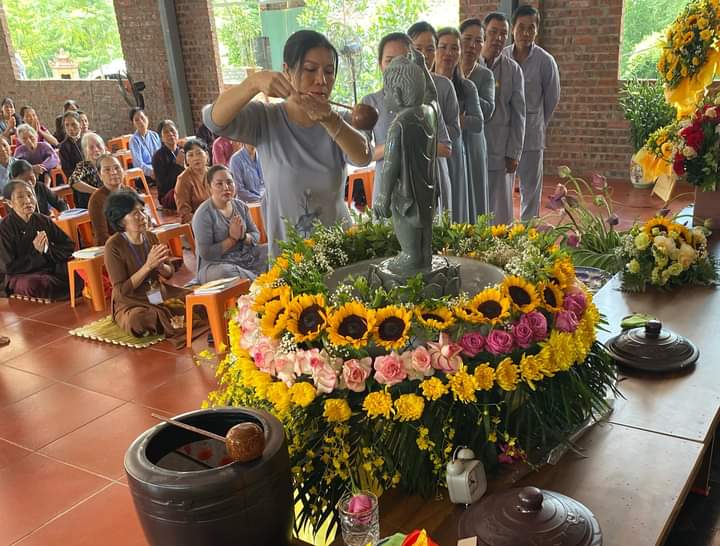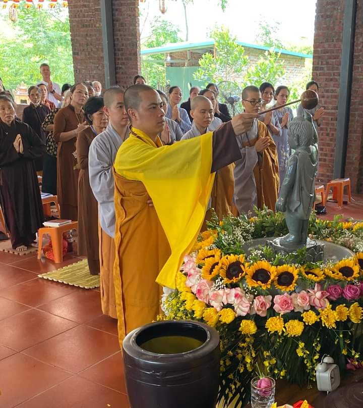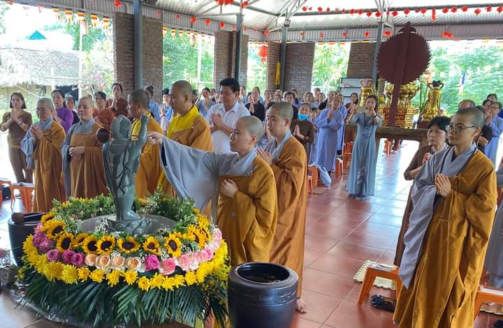 Trong không khí trang nghiêm thanh tịnh, chư Tôn đức và quý phật tử đã dâng hương, tụng kinh kính mừng Khánh đản Đức Từ Phụ và cử hành nghi thức Mộc dục (lễ tắm Phật) truyền thống theo khóa tụng thống nhất.